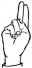 На ћирилици написано МОМЧИЛО ГЛУШАЦ састоји се из 13 слова [?]. Исписано ћириличном једноручном азбуком за глувонеме: